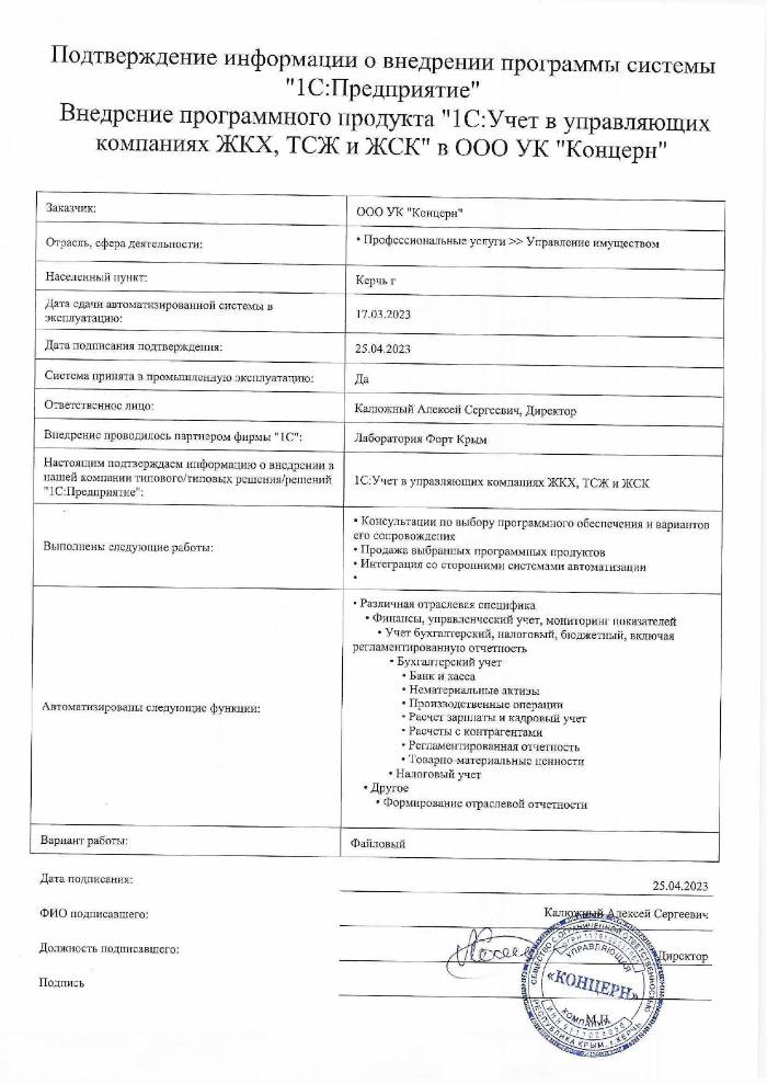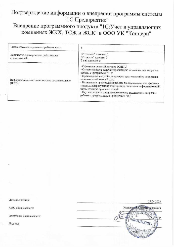 - Ежемесячно производятся работы по обновлению платформы и типовых конфигураций, диагностика состояния информационной базы, создание архивных копий