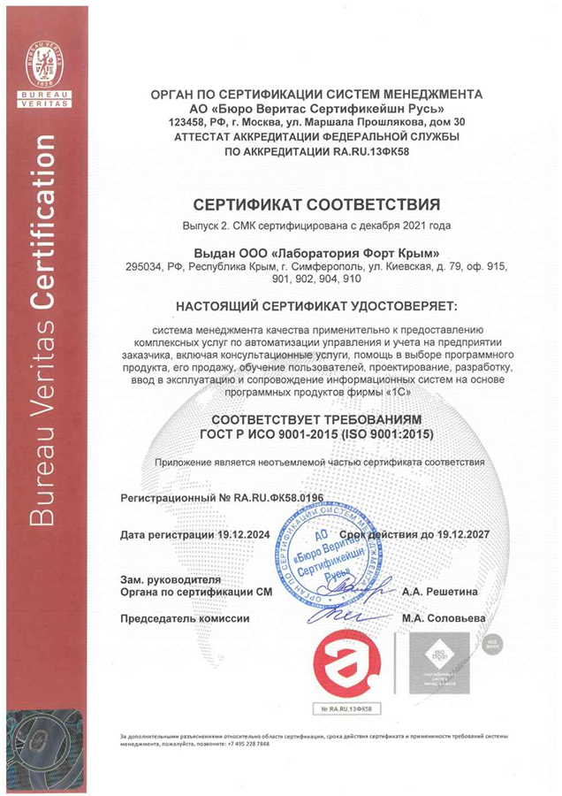 ООО «Лаборатория Форт Крым» - это официальный партнер фирмы «1С». С 1999 года мы оказываем услуги по автоматизации деятельности предприятий и сопровождению программных продуктов «1С». Качество нашей работы подтверждается различными сертификатами от «1С» и отзывами наших довольных клиентов, которые Вы можете посмотреть на Яндекс.