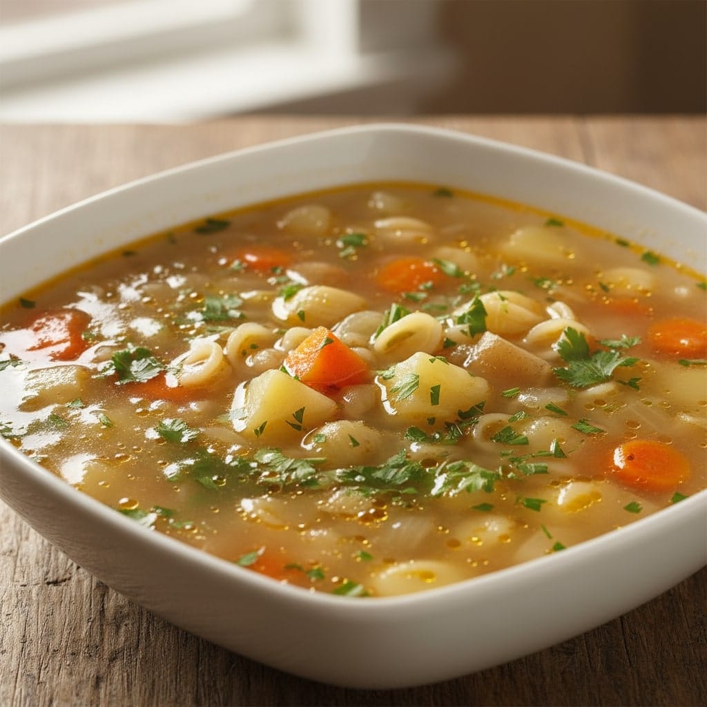- Консистенция: овощи и макаронные изделия мягкие, но не разваренные..
