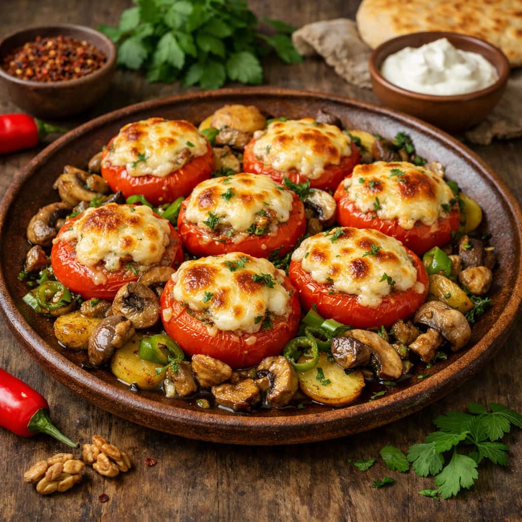 Мякоть вареной птицы без кожи, нарезанную мелкими кубиками, припущенные до полуготовности свежие шампиньоны или грибы белые сушеные вареные, нарезанные ломтиками и обжаренные с луком, заправляют сметаной, майонезом, перемешивают, выкладывают в кокотницу, сверху посыпают тертым сыром и запекают. Чтобы закуска не подгорела, кокотницу ставят на противень с горячей водой слоем не больше 1 см.Закуску отпускают в кокотнице, можно посыпать зеленью петрушки или луком зеленым — 2 г нетто на порцию.