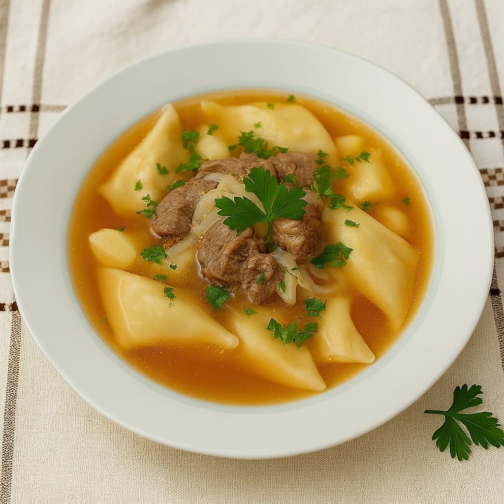 Суп «Хинкал» (суп с мясом и ракушками — дагестанское национальное блюдо)