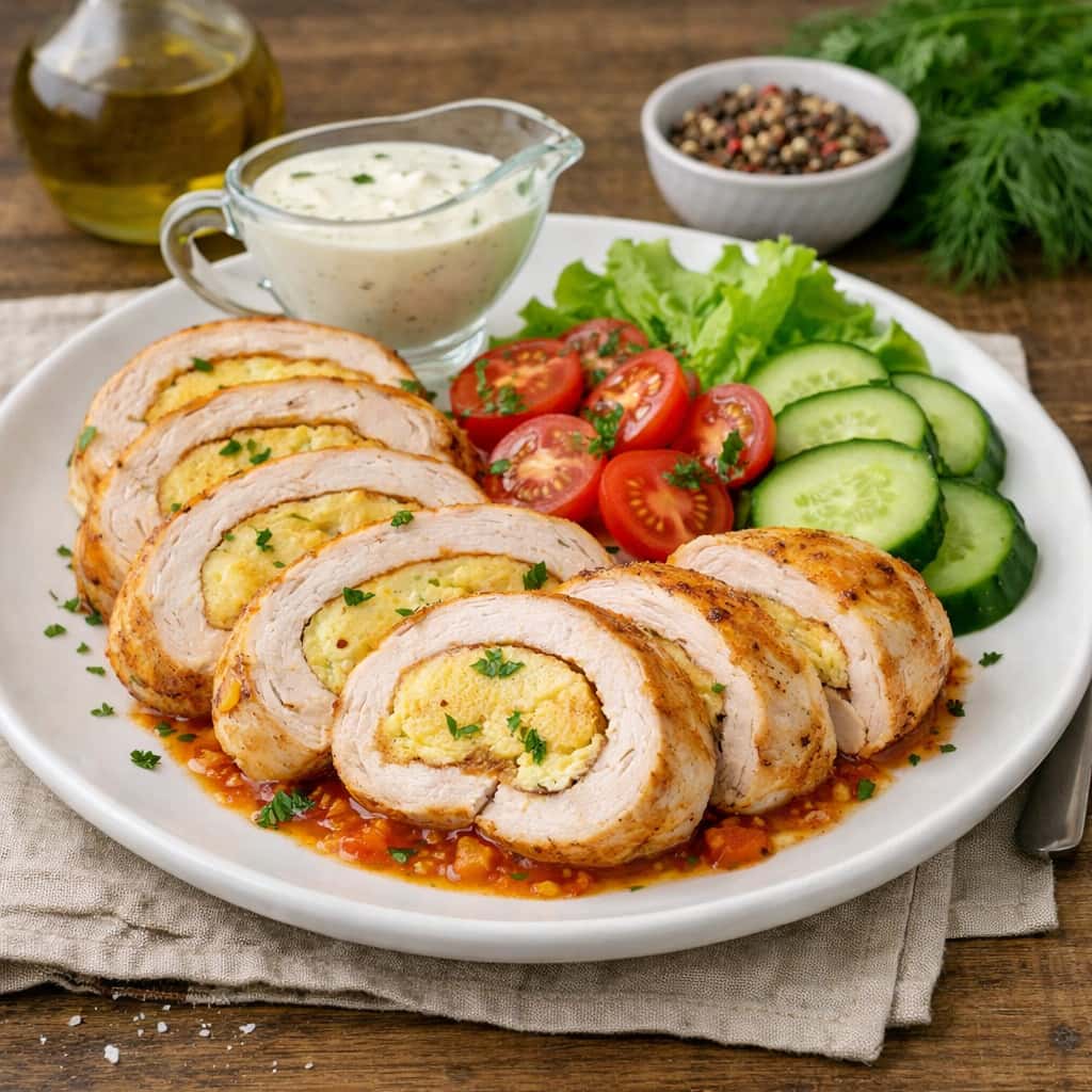 Рулет из курицы с омлетом