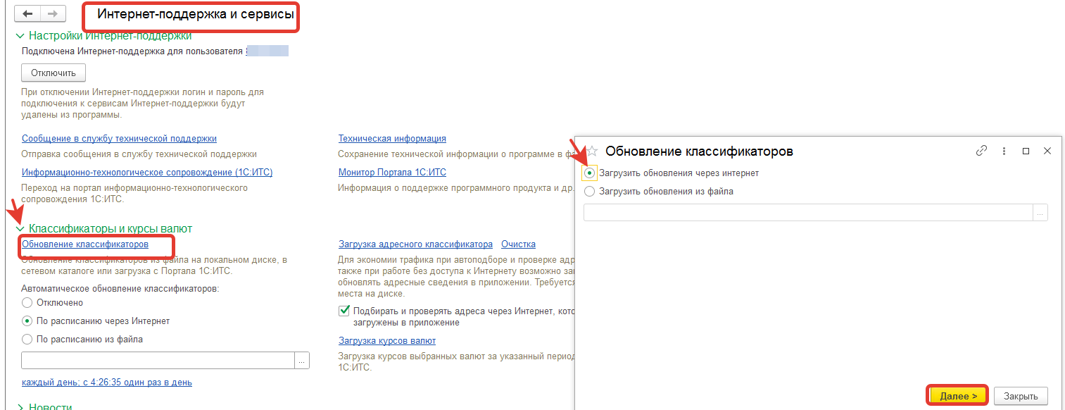 Администрирование-Интернет-поддержка и сервисы-Классификаторы и курсы валют-Загрузить обновления через интернет и нажать Далее, затем выбрать из списка Календари и Далее.