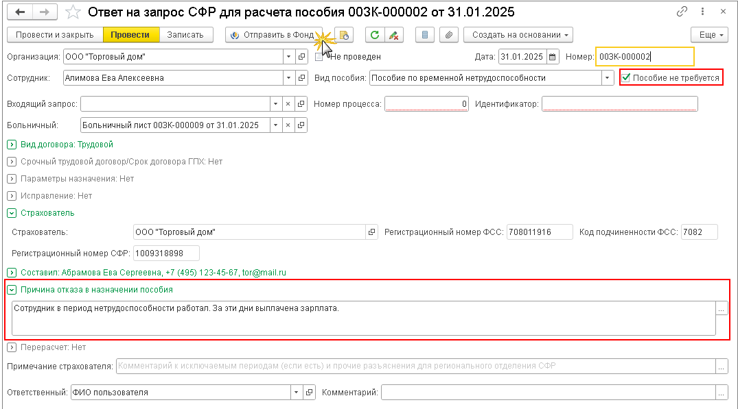 Поступил Входящий запрос СФР для расчета пособий, что сотрудник был на больничном, но он в этот период работал, что делать, как ответить СФР?