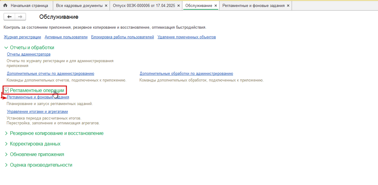 Если необходимо избавиться от предупреждения здесь и сейчас, Вы можете перейти в раздел Администрирование - Обслуживание - Регламентные операции - Регламентные и фоновые задания