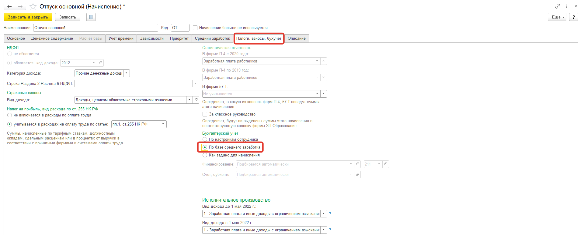 Как в ЗУП 3.1 настроить, чтобы в документе Отпуск сумма начисления разбивалась по источникам финансирования?