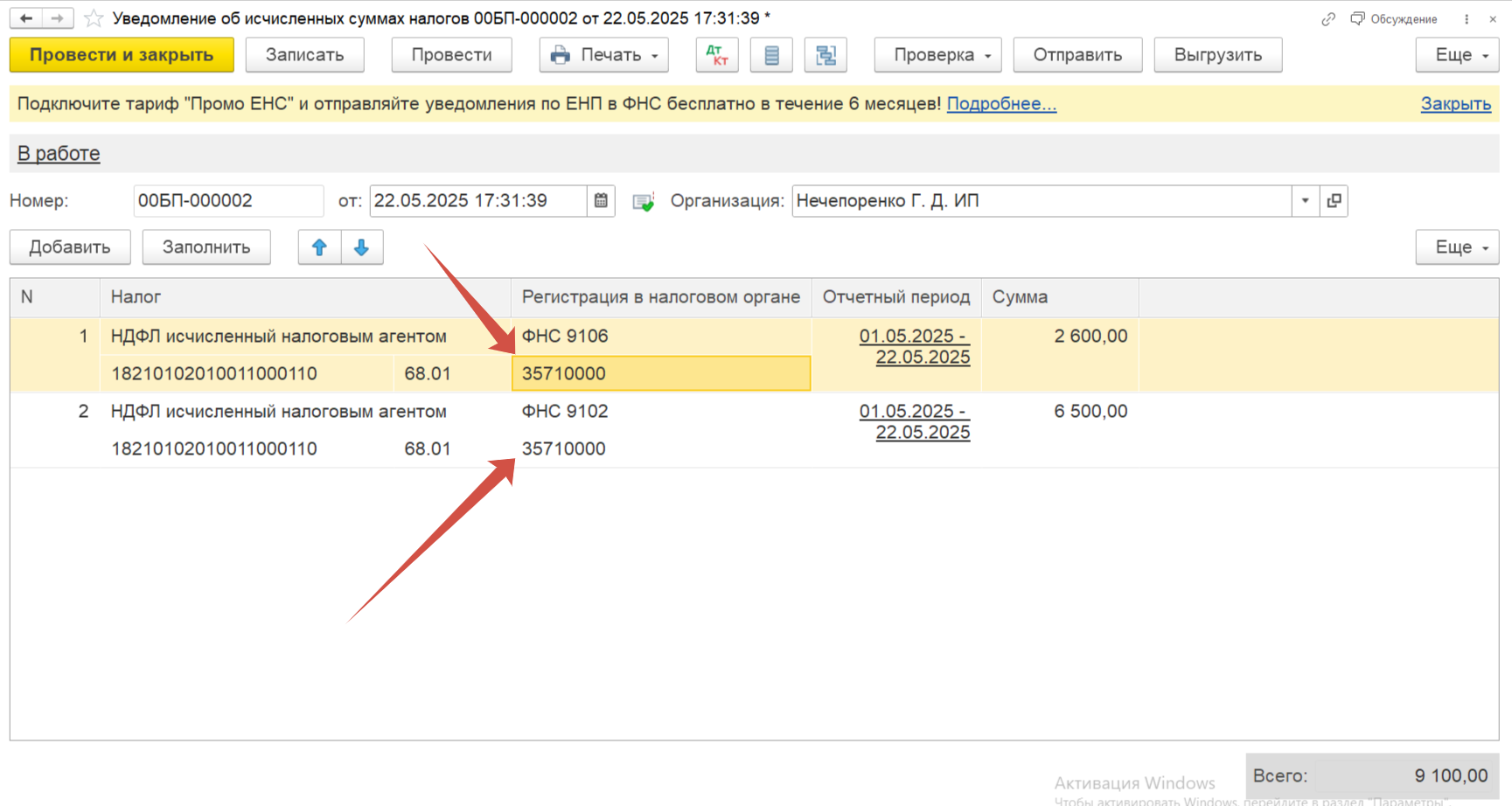 При формировании уведомления ЗА МАЙ 2025 из задач организации вместо ОКТМО обособленного подразделения подтягивается ОКТМО основной организации.