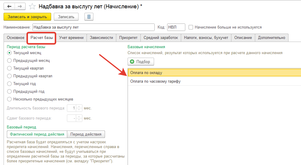 Сотруднику назначили новый вид начисления Надбавка за выслугу лет, но она не начисляется, почему?