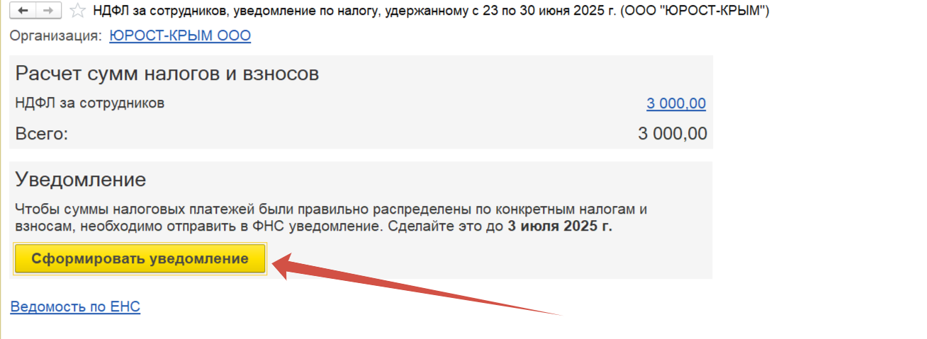 Уведомление об исчисленных налогах за вторую половину июня 2025 года не заполняется автоматически.