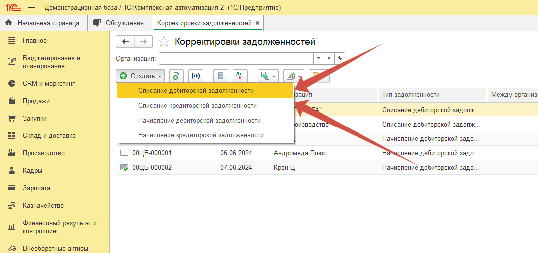 Как в 1С:Комплексная автоматизация сделать списание просроченной задолженности?