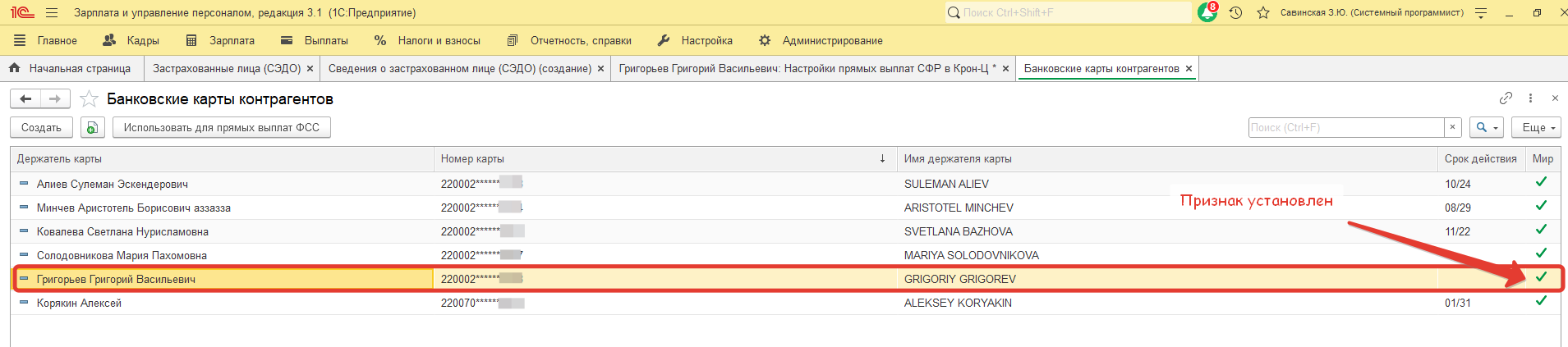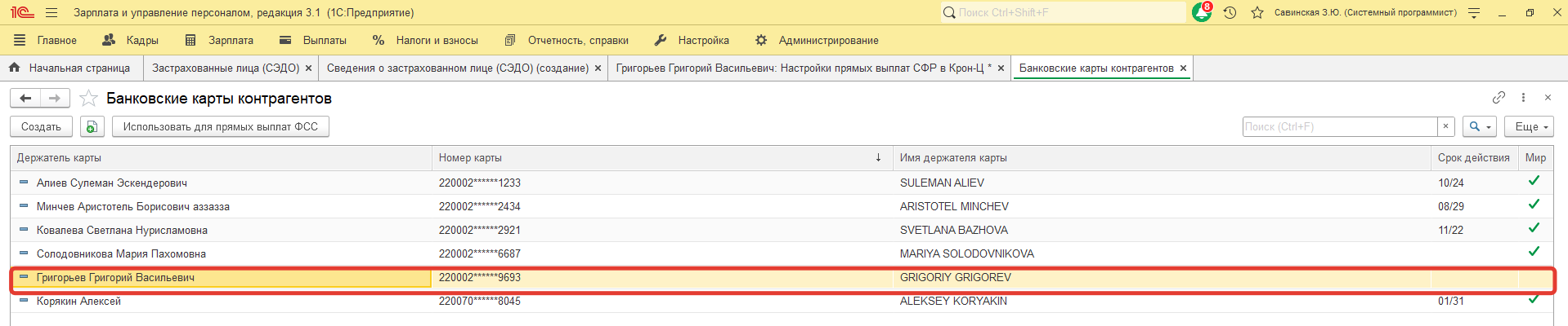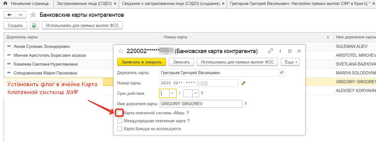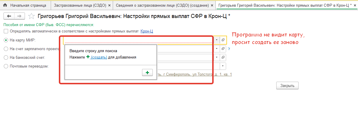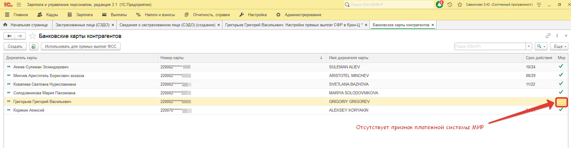 Не получается в Сведения о застрахованном лице подтянуть карту МИР - программа почему-то ее не видит.