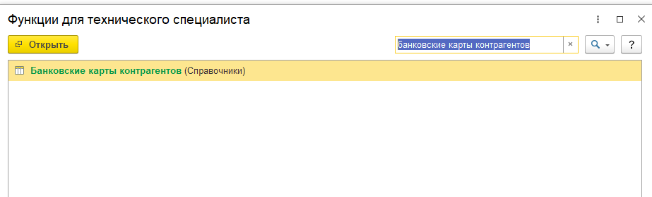 Для исправления ошибки зайдем в справочник Банковские карты контрагентов через Функции для технического специалиста.