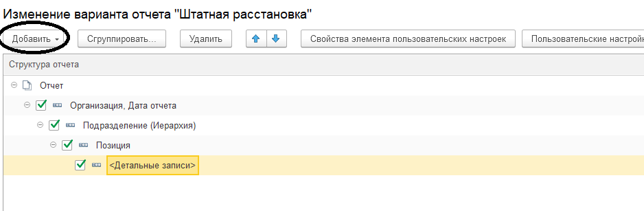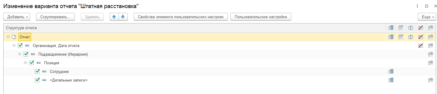 Как добавить в отчет "Штатная расстановка" дату приема и дату увольнения сотрудников, оклад?