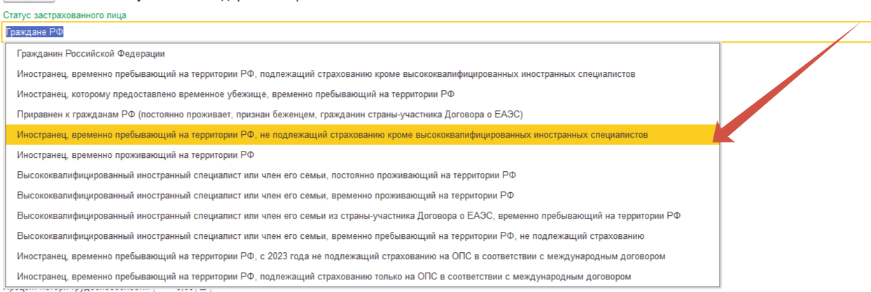 НДФЛ необходимо удерживать по ставке 13%/15%. При оформлении физического лица в программе необходимо установить во вкладке Страхование статус работника: Иностранец, временно пребывающий на территории РФ, и не подлежащий страхованию, кроме высококвалифицированных специалистов.