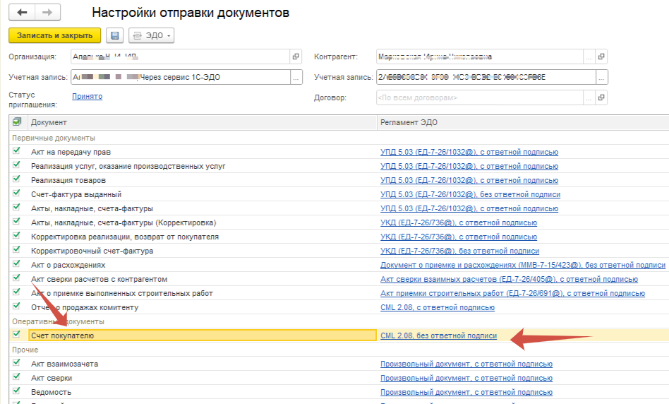 Необходимо проверить настройки обмена с контрагентами. Для этого перейти в раздел Текущие дела ЭДО в Настройки ЭДО. Открыть настройку с нужным контрагентам и в строке Счет покупателю перейти по ссылке