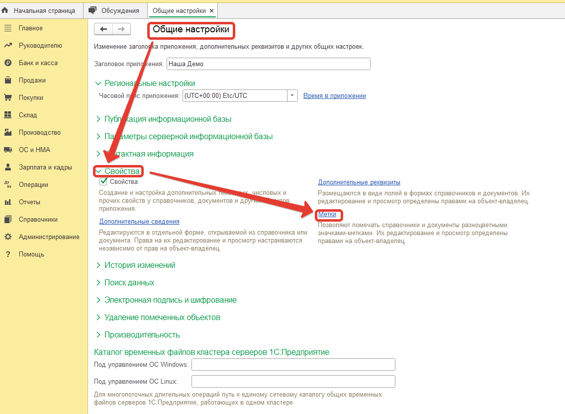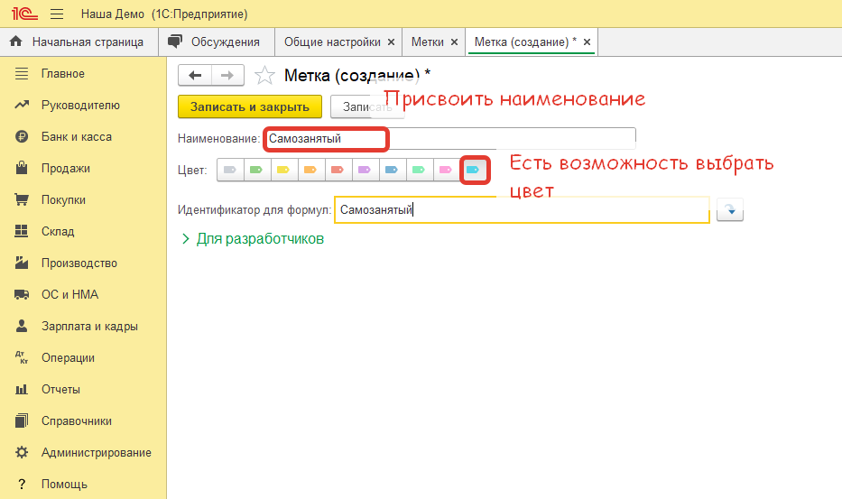 После выполнения команды Записать и закрыть новая метка появится в списке меток, привязанных к определенному справочнику.