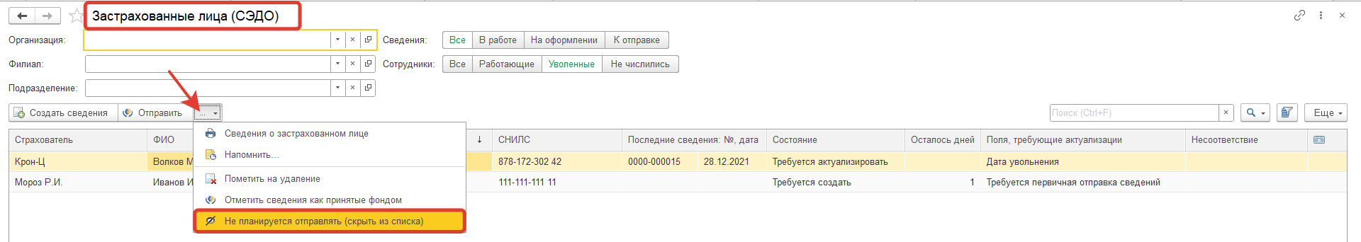 Как в БП 3.0 убрать из СЭДО запросы по уволенным работникам за прошлые года?