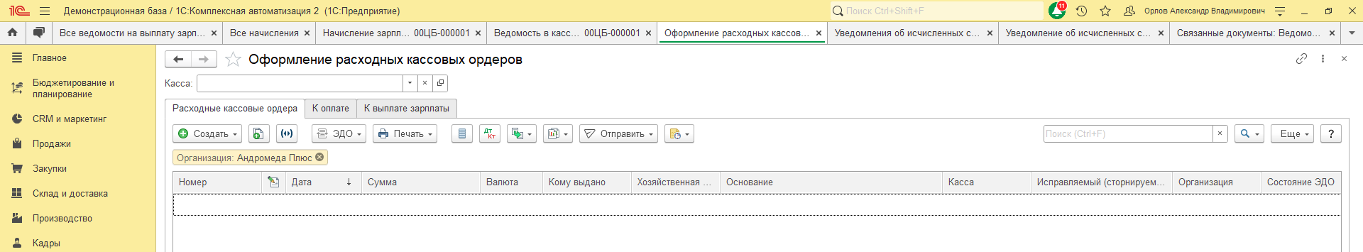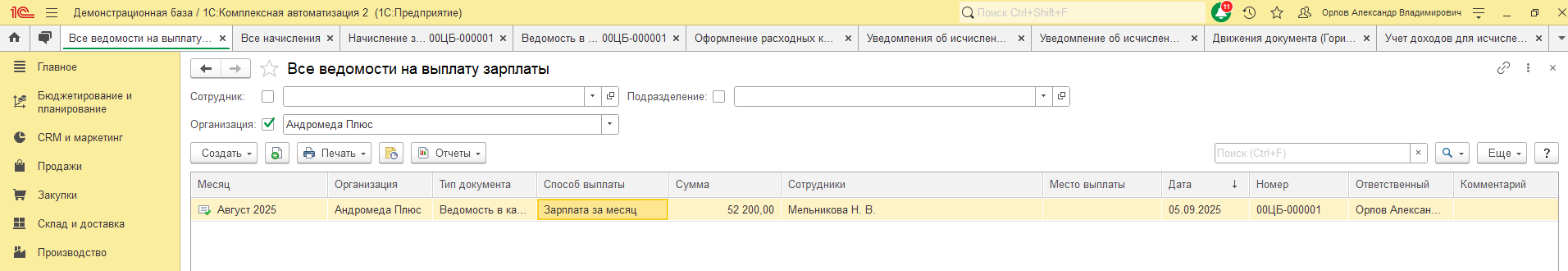 Ведомость заблокировалась, возник факт выплаты, и, соответственно, теперь необходимо подать уведомление.