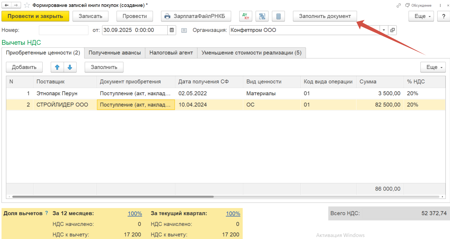 Неотраженные ранее счета-фактуры заполнятся в данном документе и будут отражены в книге покупок текущим налоговым периодом.