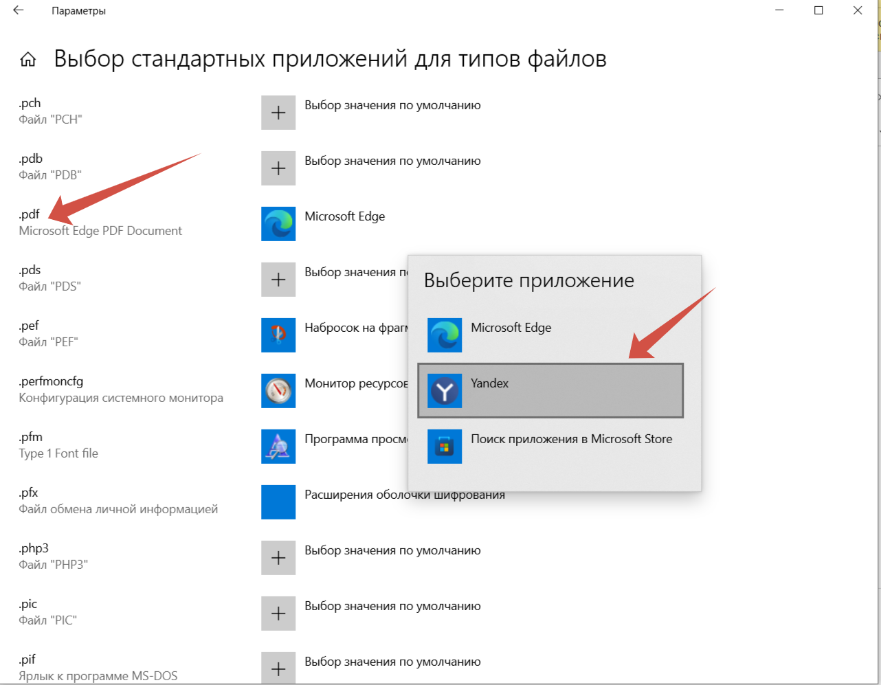 Пуск -Параметры - Приложения - Приложения по умолчанию - Выбор стандартных приложений для типовых файлов. Прокручивая колёсиком мышки в низ, ищем слева pdf и напротив выбираем приложение через которое хоти открывать данные файлы, можно выбрать так же браузер Яндекс, Google или выбрать установленную PDF-программу.