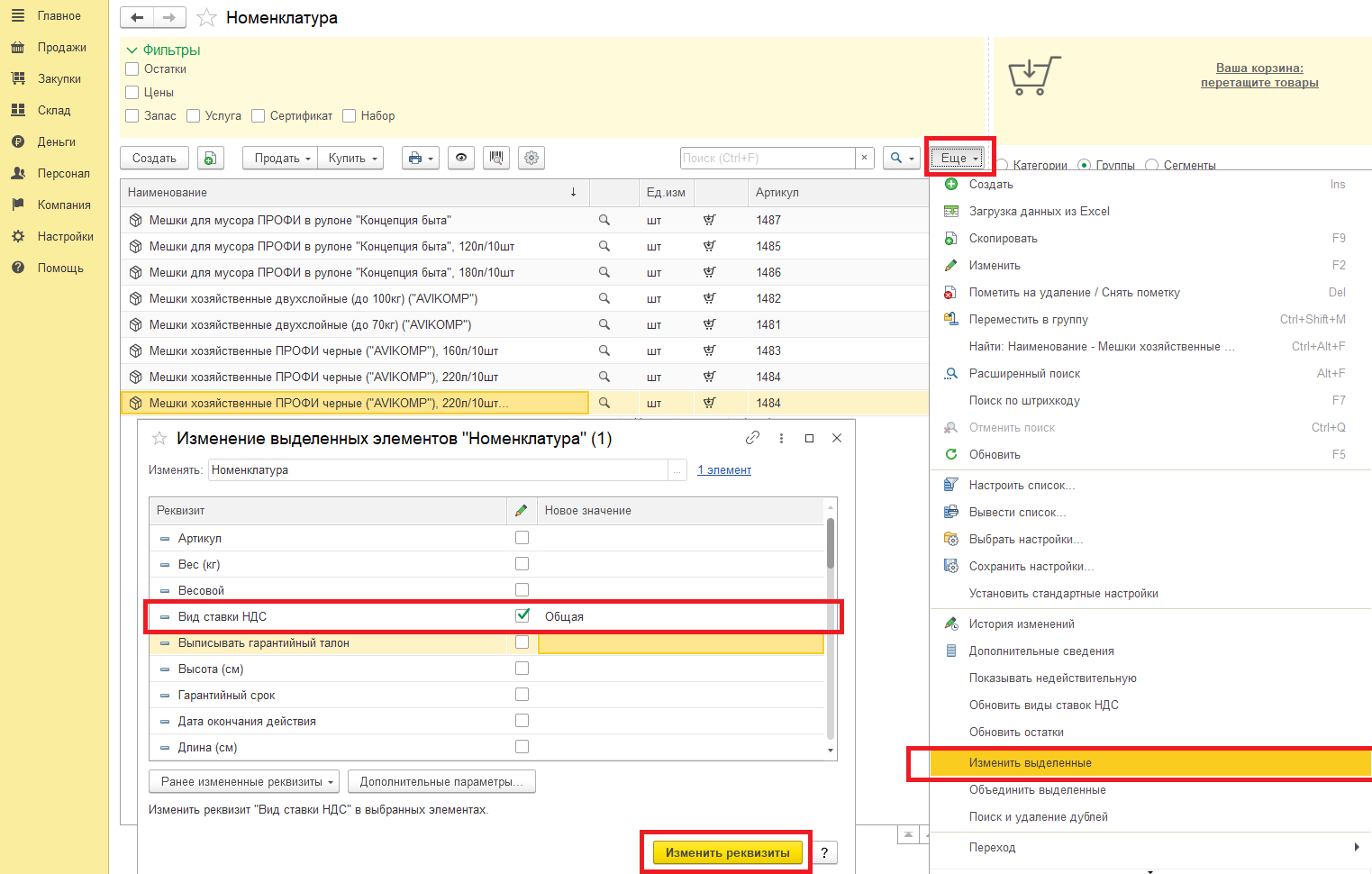 Предприятие стало плательщиком НДС. Как изменить ставки НДС в карточках номенклатуры в 1С:Розница 3.0 массово?