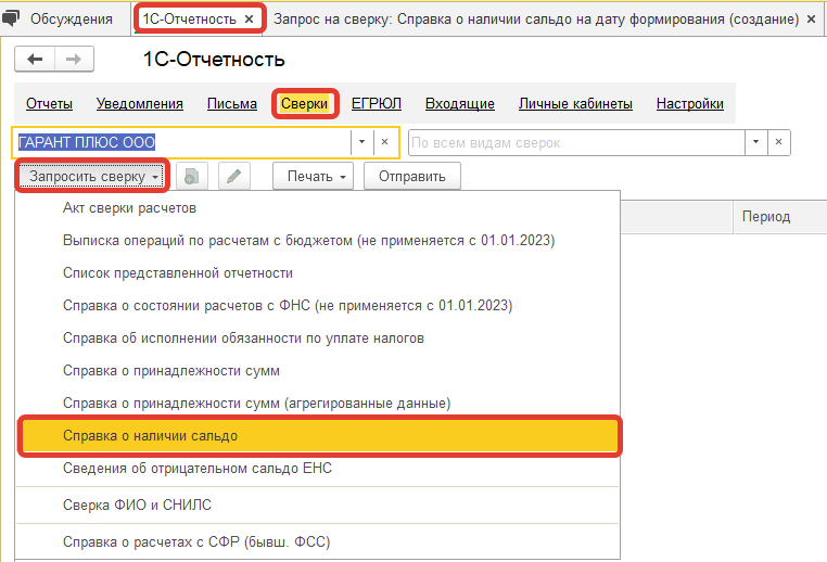 С 01.01.2023г. в соответствии с приказом ФНС от 29 декабря 2022г. № ЕД-7-19/1295@ ФНС не поддерживает запрос на сверку с видом Справка о состоянии расчетов с ФНС ( не применяется с 01.01.2023г.).