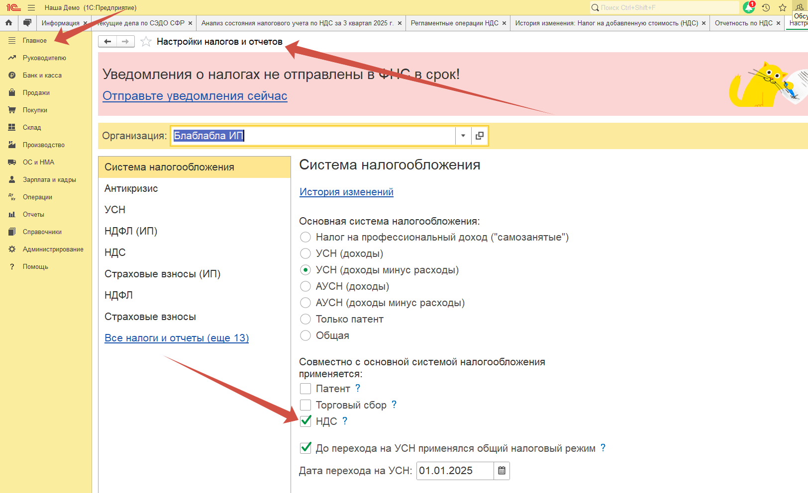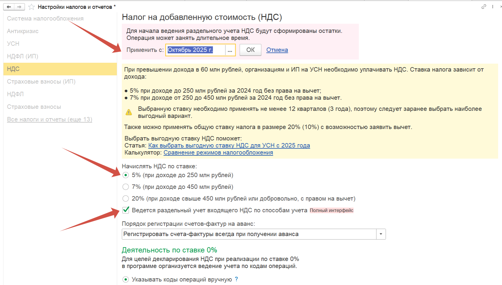 Превысили порог 60 млн выручки по УСН, и со следующего месяца становимся плательщиками НДС. У нас льготные операции по продажам (реализация медицинских услуг). Какие настройки необходимо выполнить в программе в этом случае?