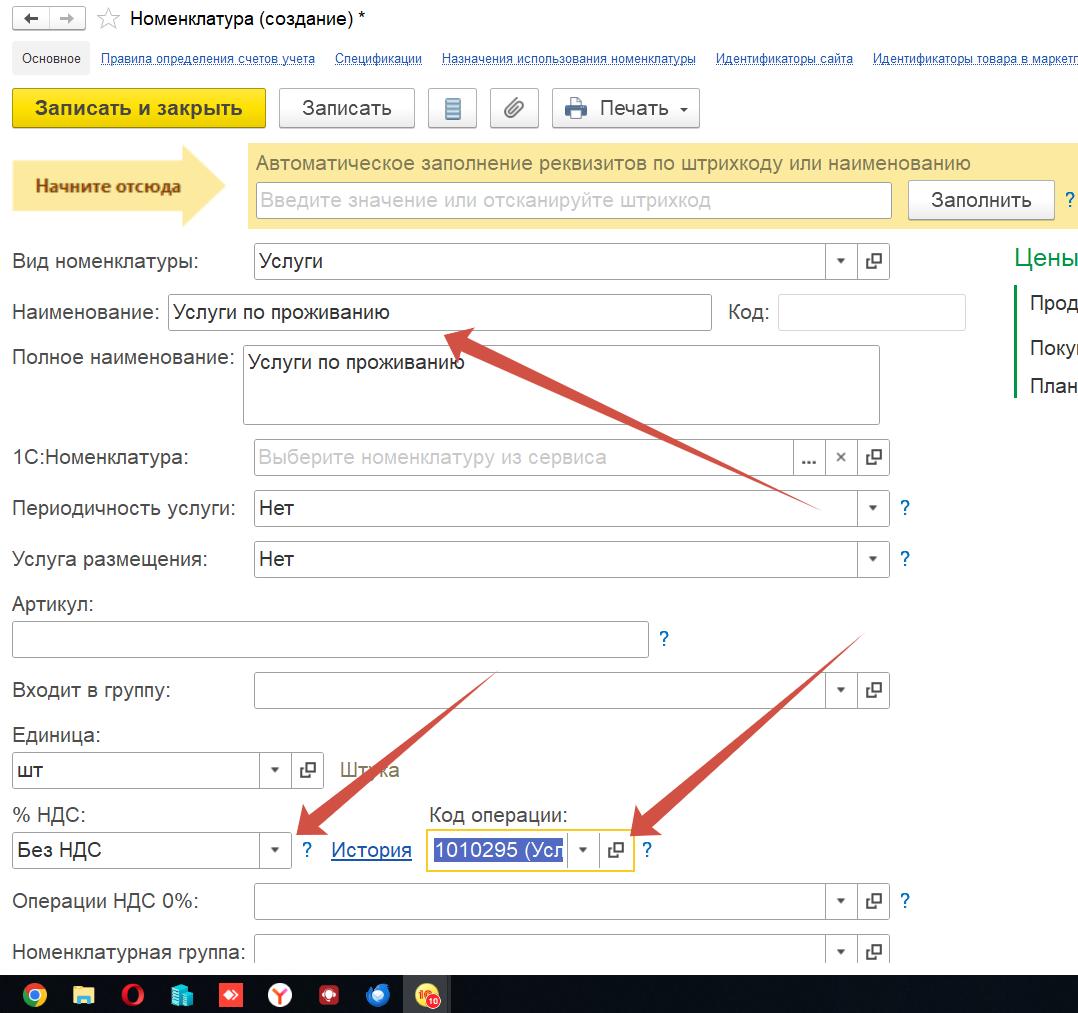 По необходимости можно проставить коды льготных операций в карточке Номенклатуры, если они различны (отличаются от кода, установленного в настройке налогов и отчетов по умолчанию) и не облагаются НДС.