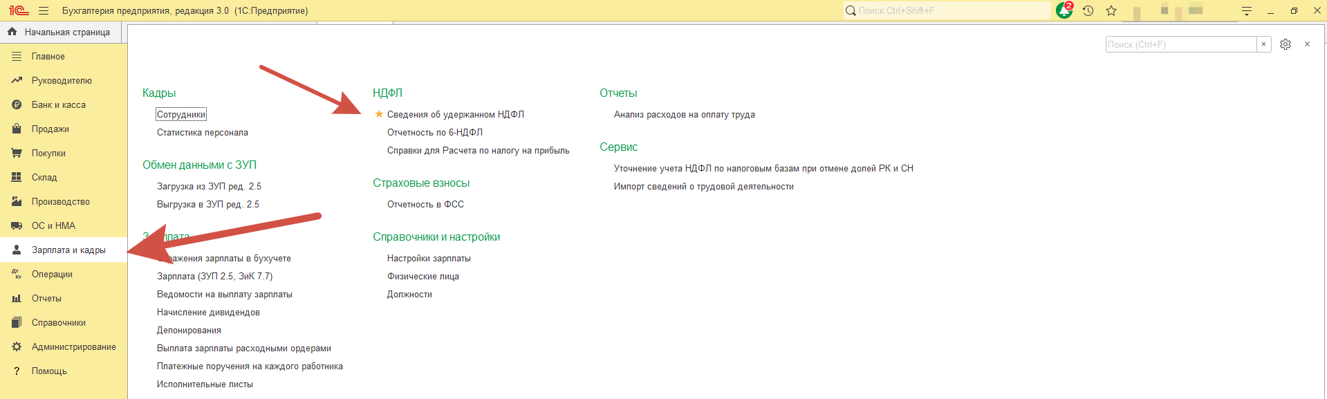 Вы ведете расчет зарплаты в конфигурации 1С:Зарплата и управление персоналом, поэтому вам необходимо создать документ Отражение удержанного НДФЛ в бухучете (в программном продукте 1С:Зарплата и управление персоналом)