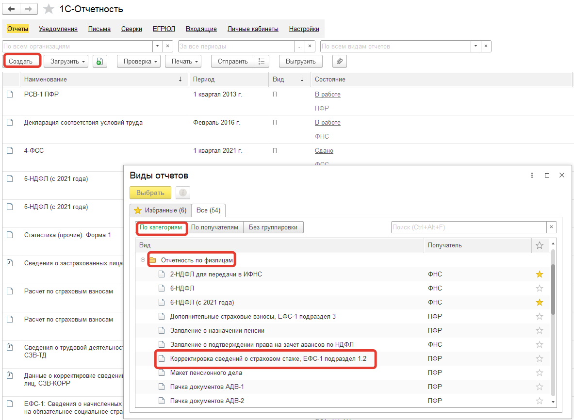 СФР попросил сделать корректировку отчета по стажам сотрудников. Каким отчетом скорректировать данные в ЗУП 3.1., не могу найти?