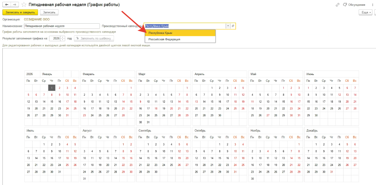 Не могу в БП 3.0 оформить нового сотрудника, выдает ошибку: "Невозможно определить ближайшую дату, включенную в график, для даты 15.01.2026г..", что делать?