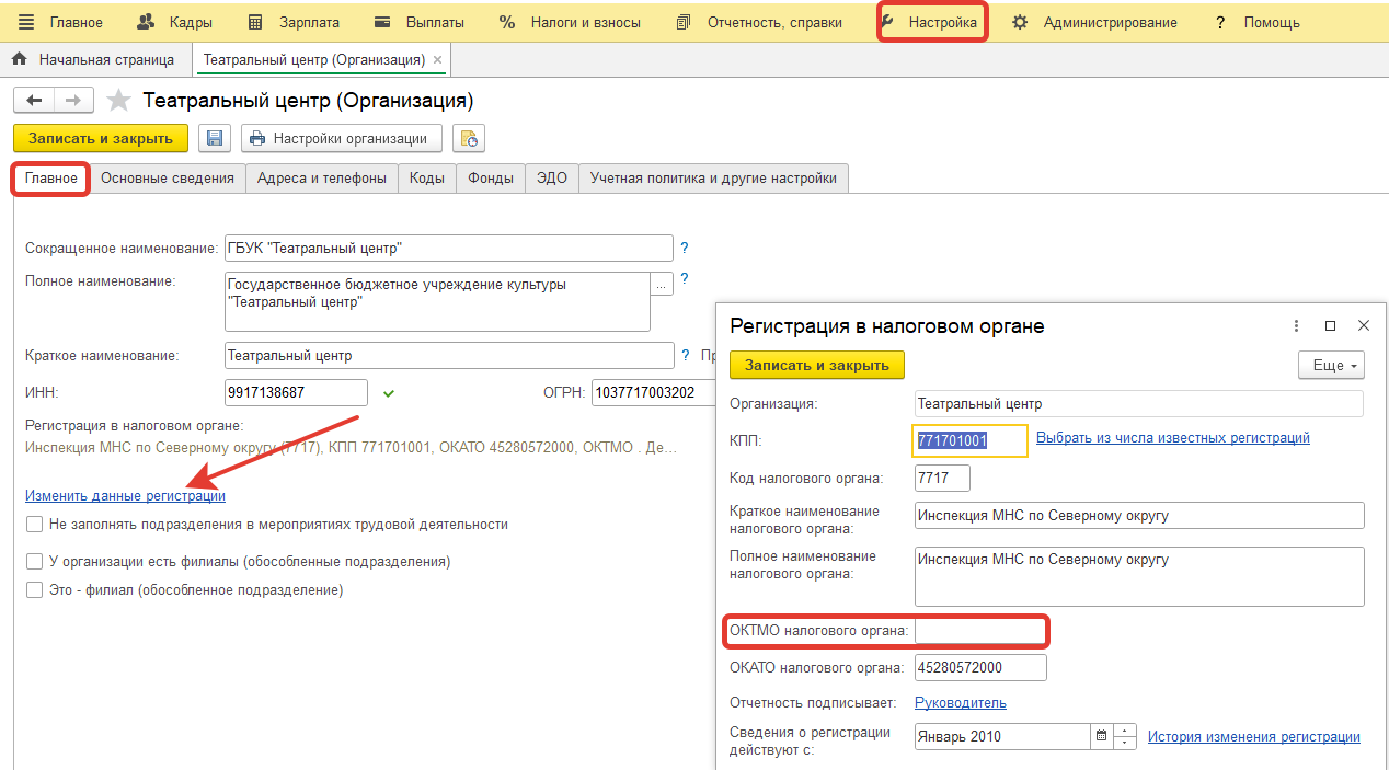 У организации изменился код ОКТМО, как его изменить в ЗУП 3.1?