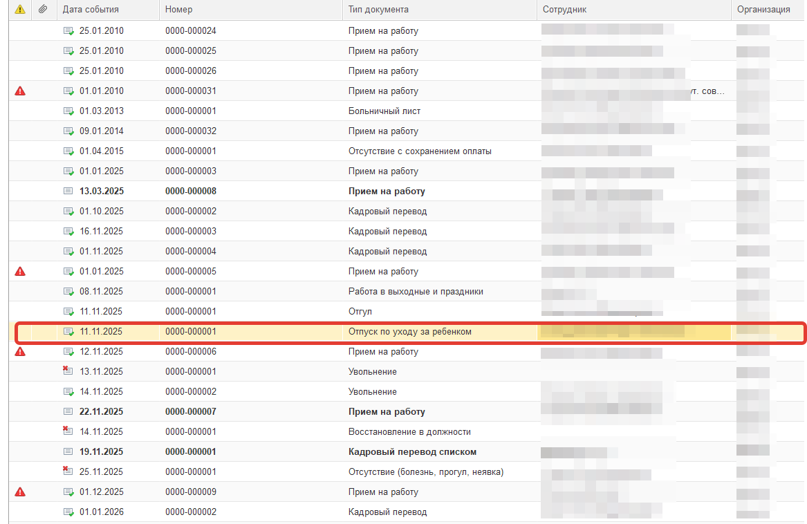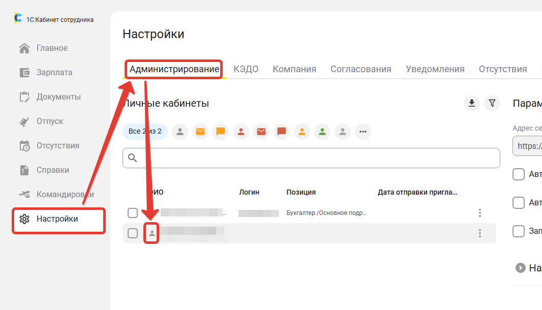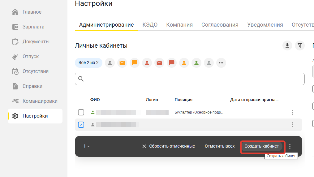 При переходе на КЭДО в данном примере одна из сотрудниц находилась в отпуске по уходу за ребенком, т.к. она не уволена, а должность за ней сохраняется, в публикацию попал ее кабинет. Рекомендуется создать кабинет и отправить сотруднице приглашение для активации кабинета.
