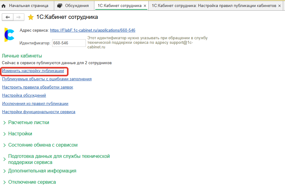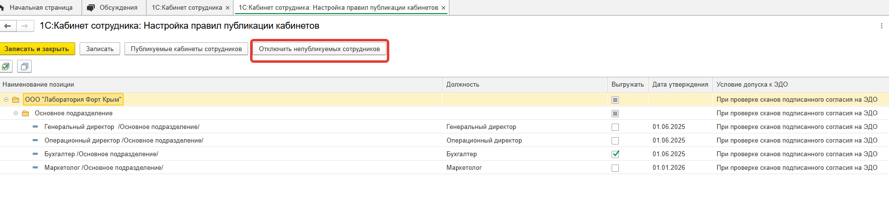 1. Автоудаление в ЗУП при выполнении команды Отключить непубликуемые кабинеты.