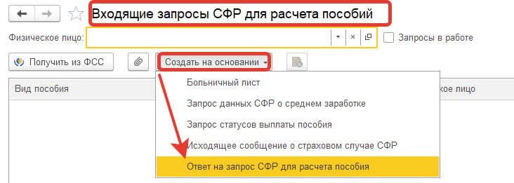 Есть несколько вариантов формирования нового документа Ответ на запрос СФР для расчета пособия :