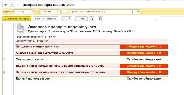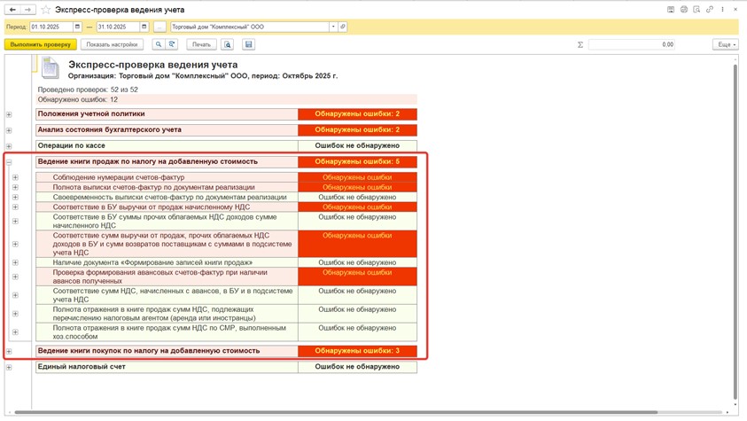 Экспресс-анализ ведения учета – это более комплексный отчет, позволяющий определить ошибки не только в учете НДС с авансов.
